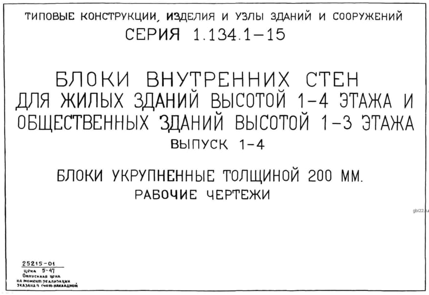 | Название стандарта | Блоки внутренних стен для жилых зданий высотой 1-4 этажа и общественных зданий высотой 1-3 этажа. |