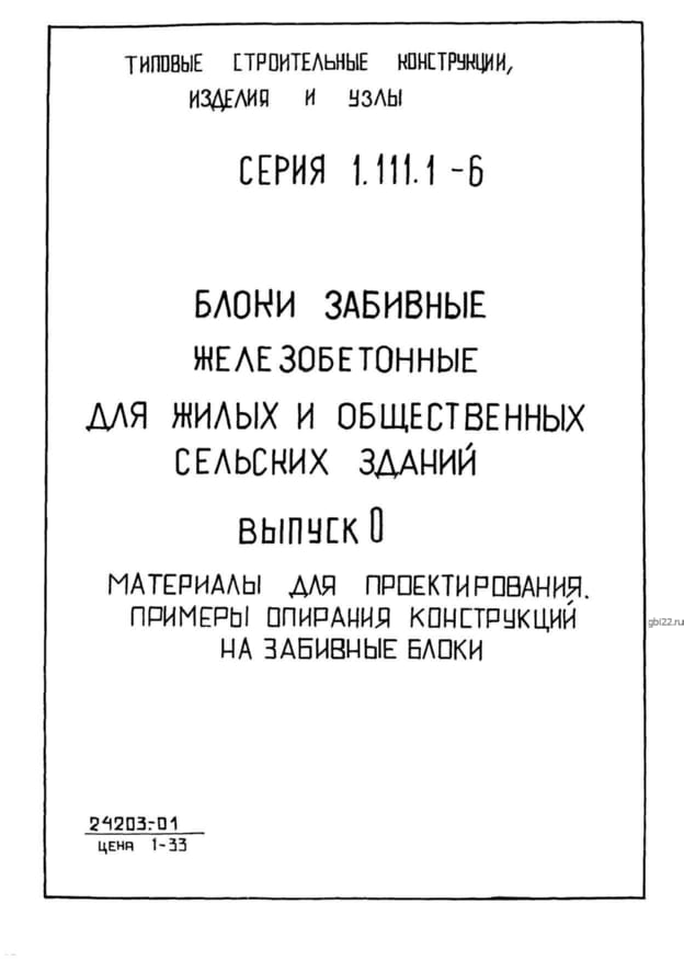 | Название стандарта | Блоки забивные железобетонные для жилых и общественных сельских зданий. |