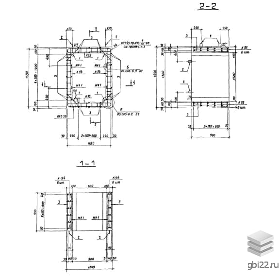 Армирование блоков выполняется с использованием пространственного каркаса, собранного из плоских каркасов. Рабочая и поперечная арматура изготовлены из горячекатаной стали класса А-III. В блоках предусмотрены закладные детали для упрощения соединения изделий и крепления оборудования.