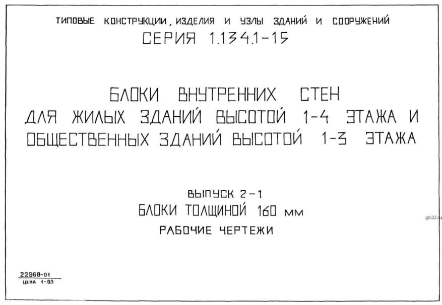 | Название стандарта | Блоки внутренних стен для жилых зданий высотой 1-4 этажа и общественных зданий высотой 1-3 этажа. |