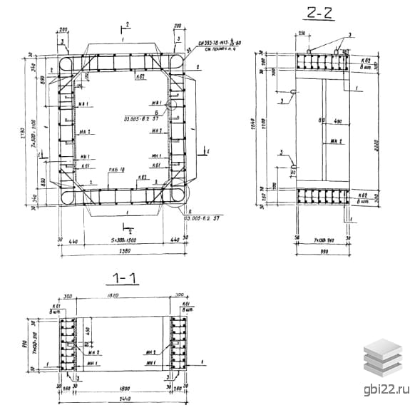 Армирование блоков осуществляется с помощью пространственного каркаса, собранного из плоских каркасов. Рабочая и поперечная арматура выполнены из горячекатаной стали класса А-III. В блоках предусмотрены закладные детали для упрощения соединения изделий и крепления оборудования. Для удобства погрузочно-разгрузочных работ блоки оснащаются монтажными петлями из арматурной стали класса А-I.