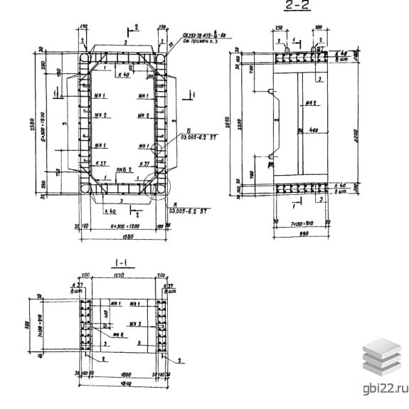 Армирование блоков выполняется пространственным каркасом, собранным из плоских каркасов. Рабочая и поперечная арматура изготовлены из горячекатаной стали класса А-III. В блоках предусмотрены закладные детали для упрощения соединения изделий и крепления оборудования. Для удобства погрузочно-разгрузочных работ блоки оснащаются монтажными петлями из арматурной стали класса А-I.