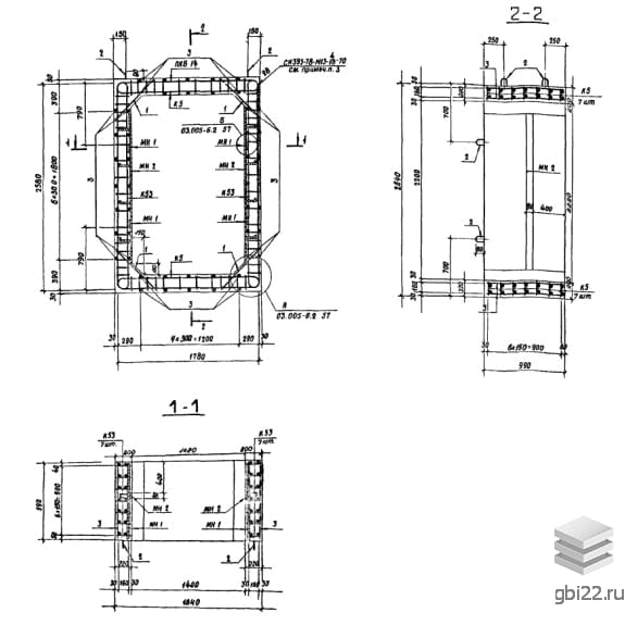 Армирование блока БВС III 1,4-2,2 выполняется с использованием пространственного каркаса, собранного из плоских каркасов. Рабочая и поперечная арматура изготовлены из горячекатаной стали класса A-III. В блоках предусмотрены закладные детали, упрощающие процессы соединения изделий и крепления оборудования.