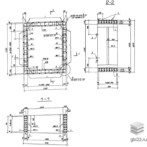 Армирование блоков выполняется пространственным каркасом, собранным из плоских каркасов. Рабочая и поперечная арматура изготовлены из горячекатаной стали класса А-III. В блоках предусмотрены закладные детали для упрощения соединения изделий и крепления оборудования. Для удобства погрузочно-разгрузочных работ блоки оснащаются монтажными петлями из арматурной стали класса А-I.