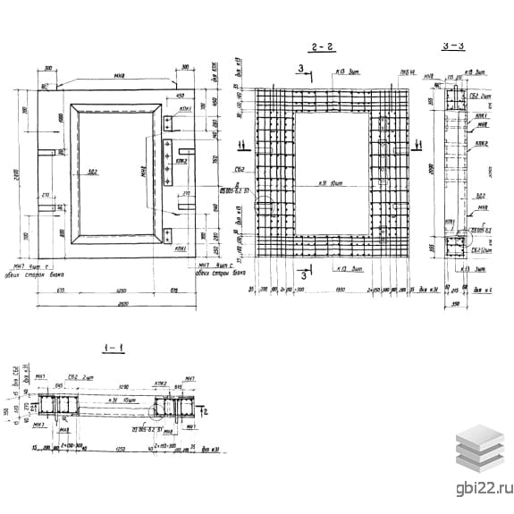 Армирование блоков осуществляется с помощью пространственного каркаса, собранного из плоских каркасов. Рабочая и поперечная арматура выполнены из горячекатаной стали класса А-III. В блоках предусмотрены закладные детали, упрощающие процессы соединения изделий и крепления оборудования. Для удобства погрузочно-разгрузочных работ блоки оснащаются монтажными петлями из арматурной стали класса А-I.