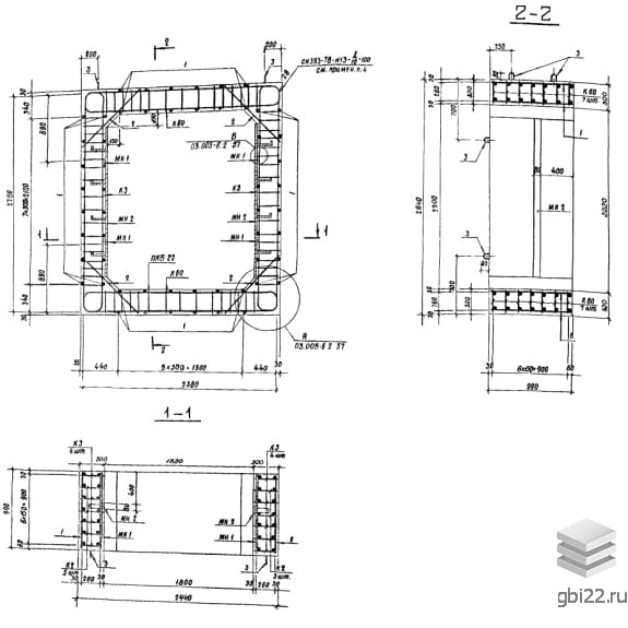 Армирование блоков осуществляется с помощью пространственного каркаса, собранного из плоских каркасов. Рабочая и поперечная арматура выполнены из горячекатаной стали класса А-III. В блоках предусмотрены закладные детали, упрощающие соединение изделий и крепление оборудования. Для удобства погрузочно-разгрузочных работ блоки оснащаются монтажными петлями из арматурной стали класса А-I.
