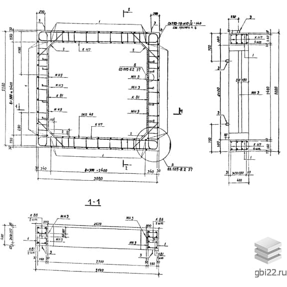 Армирование блоков выполняется пространственным каркасом, собранным из плоских каркасов. Рабочая и поперечная арматура изготовлены из горячекатаной стали класса А-III. В блоках предусмотрены закладные детали для упрощения соединения изделий и крепления оборудования. Для удобства погрузочно-разгрузочных работ блоки оснащаются монтажными петлями из арматурной стали класса А-I.