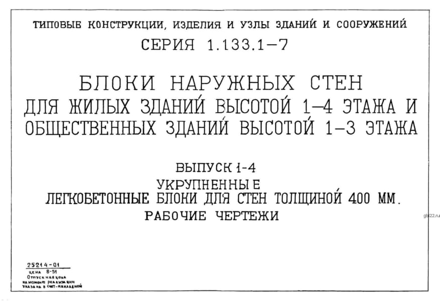 | Название стандарта | Блоки наружных стен для жилых зданий высотой 1 - 4 этажа и общественных зданий высотой 1 - 3 этажа. |