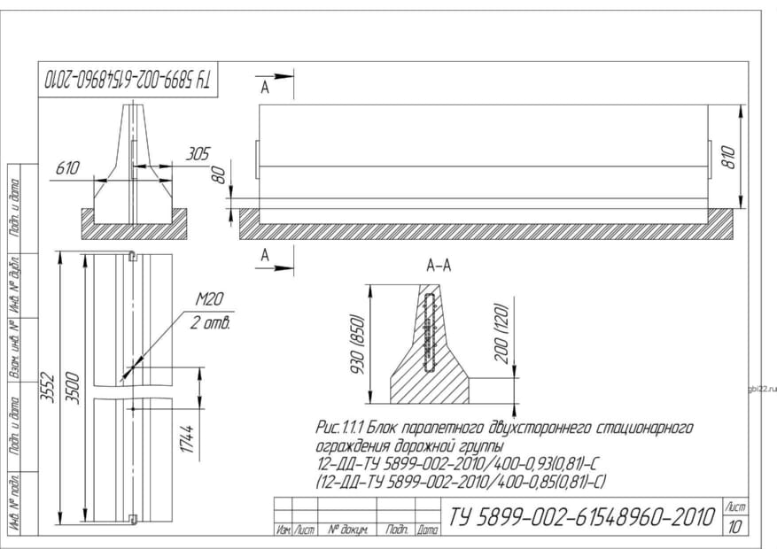 | Название стандарта | Блоки железобетонные парапетных удерживающих ограждений. |