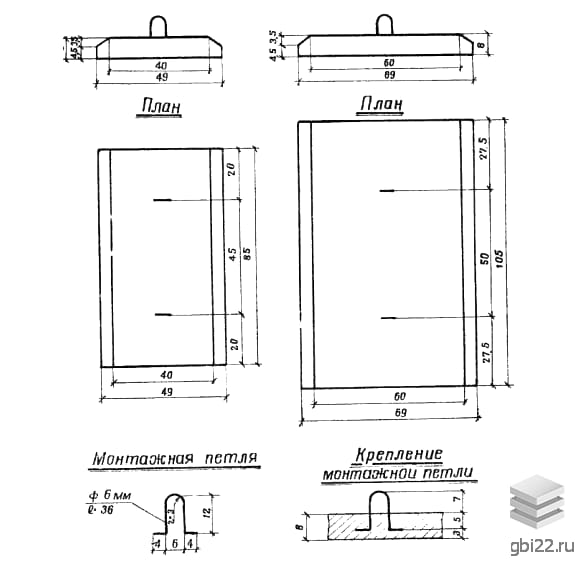 Блоки П1 изготавливаются из тяжелого бетона с армированием стальными каркасами (класс стали А-100 по ГОСТ 5781-82). Для удобства монтажа предусмотрена строповочная петля ПС-1.