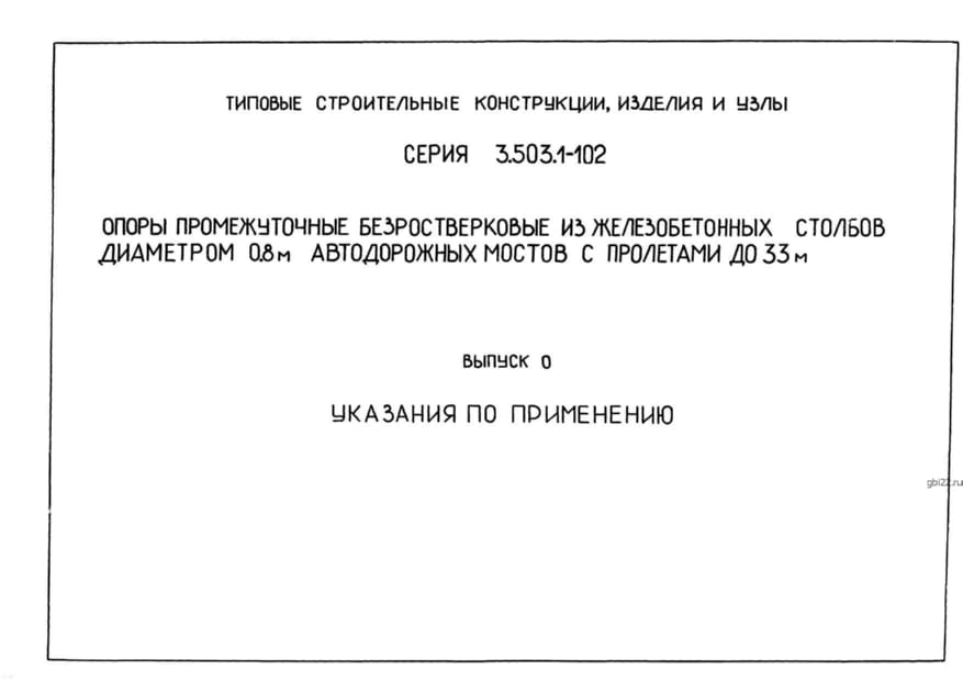 | Название стандарта | Опоры промежуточные безростверковые из железобетонных столбов диаметром 0,8 м автодорожных мостов с пролетами до 33 м. |