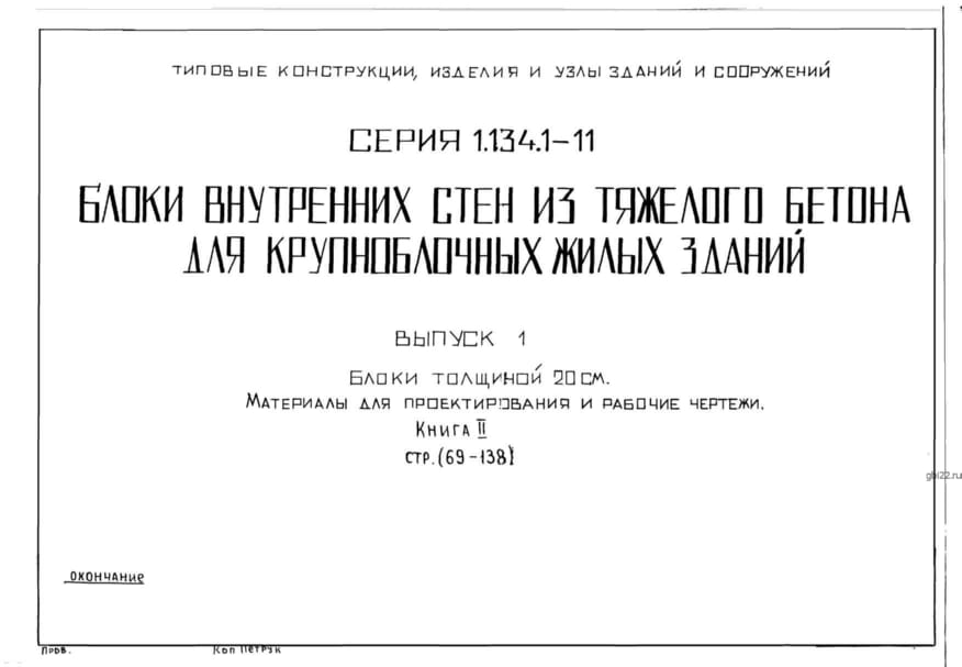 | Название стандарта | Блоки внутренних стен из тяжелого бетона для крупноблочных жилых зданий. |