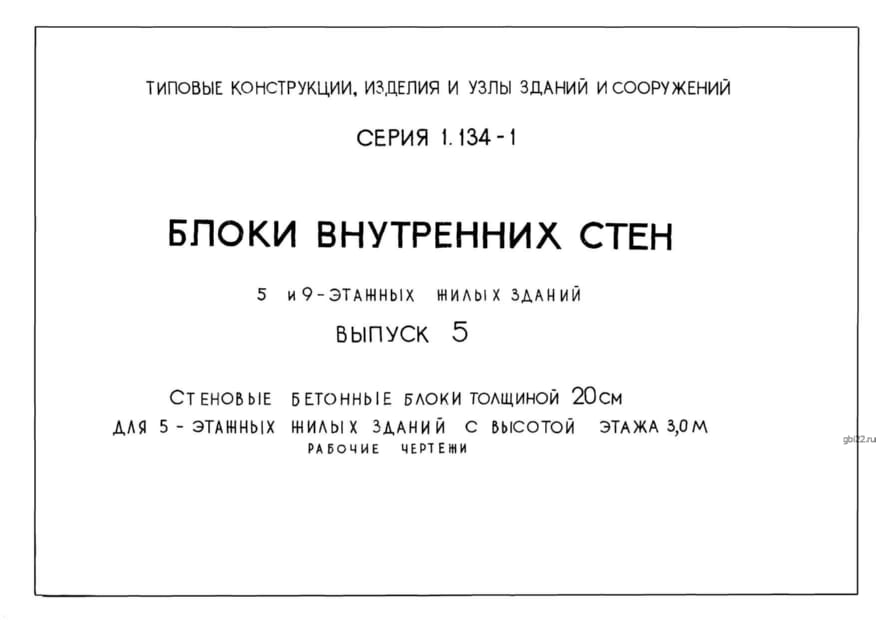 | Название стандарта | Блоки внутренних стен 5 и 9 этажных жилых зданий. |