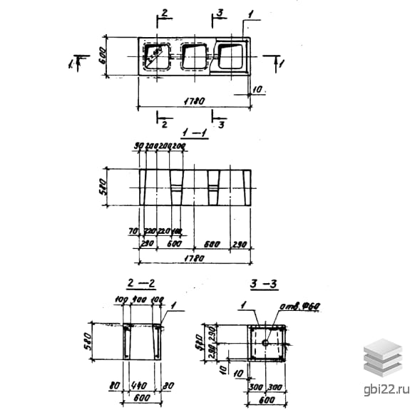 Железобетонные дырчатые блоки УДБ 0,6-1,8 – специализированные конструкции для возведения фундаментов под промышленное оборудование. Изделия представляют собой прямоугольные панели с системой вертикальных сквозных отверстий пирамидальной формы. Габариты и шаг отверстий (600 мм) стандартизированы для всего модельного ряда.