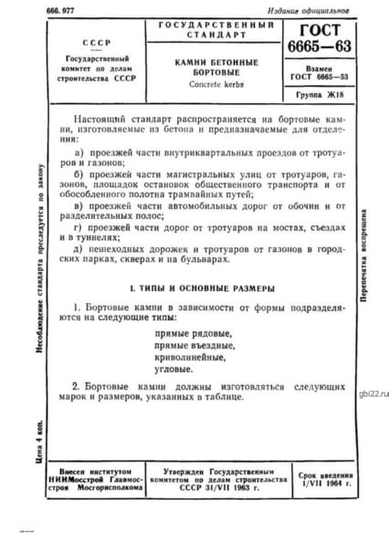 | Название стандарта | Камни бетонные бортовые. |