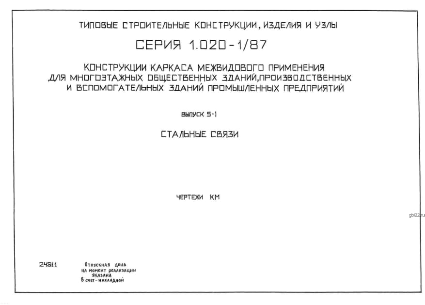 | Название стандарта | Конструкции каркаса межвидового применения для многоэтажных общественных зданий, производственных и вспомогательных зданий промышленных предприятий. |