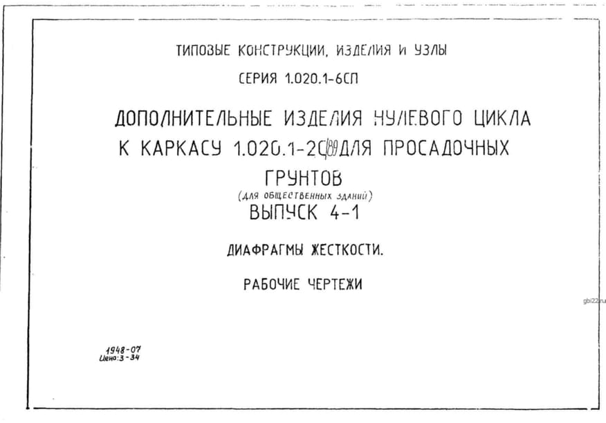 | Название стандарта | Дополнительные изделия нулевого цикла к каркасу 1.020.1-2с/89 для просадочных грунтов (для общественных зданий). |