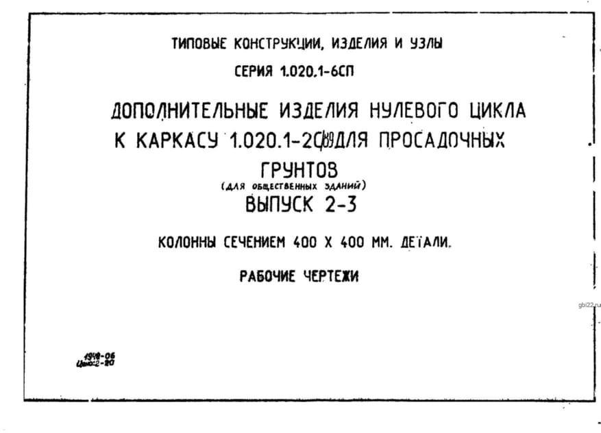 | Название стандарта | Дополнительные изделия нулевого цикла к каркасу 1.020.1-2с/89 для просадочных грунтов (для общественных зданий). |