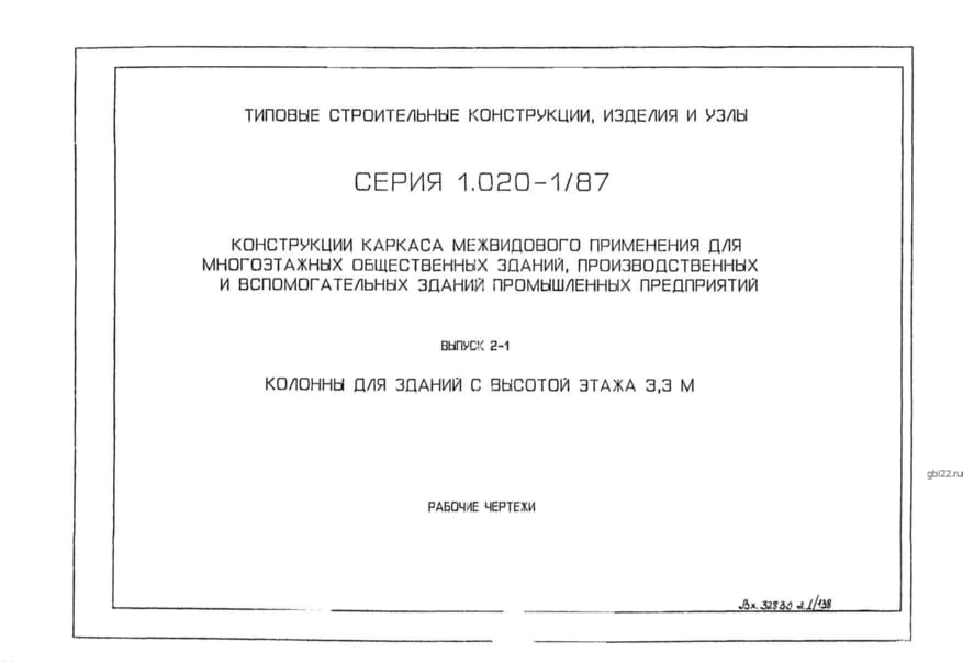 | Название стандарта | Конструкции каркаса межвидового применения для многоэтажных общественных зданий, производственных и вспомогательных зданий промышленных предприятий. |