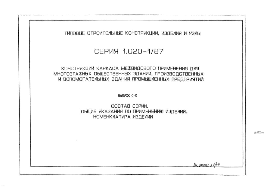 | Название стандарта | Конструкции каркаса межвидового применения для многоэтажных общественных зданий, производственных и вспомогательных зданий промышленных предприятий. |