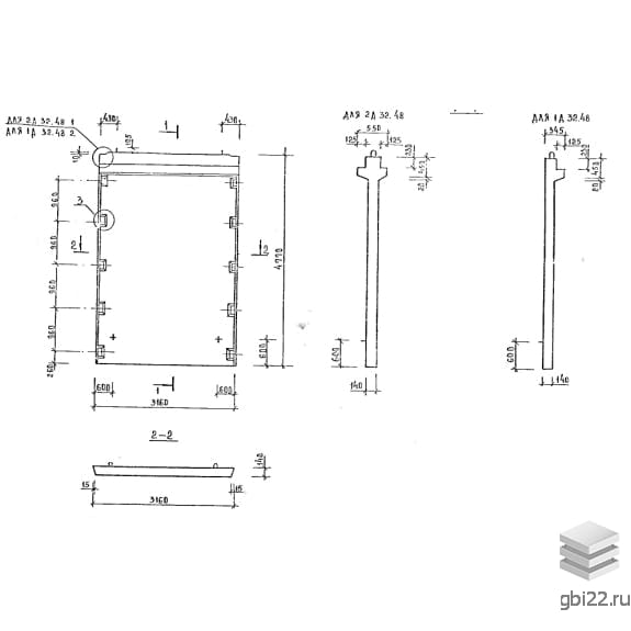 Диафрагмы 1ДП 32-48 размеры: длина, мм.: 3160, ширина, мм.: 345, высота, мм.: 4770, вес, кг.: 4140, марка бетона: М350. Изделия относятся к категории Диафрагмы жесткости железобетонные-Диафрагмы жесткости и изготавливаются по технической документации согласно серия 1.020-1/87