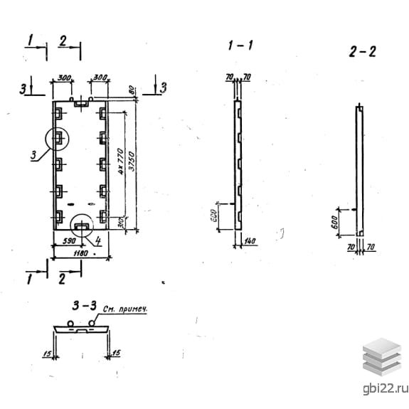 Диафрагмы Д 12-38 пв размеры: длина, мм.: 1180, ширина, мм.: 140, высота, мм.: 3750, вес, кг.: 1560, марка бетона: М300. Изделия относятся к категории Диафрагмы жесткости железобетонные-Диафрагмы жесткости и изготавливаются по технической документации согласно серия 1.020.1-3пв