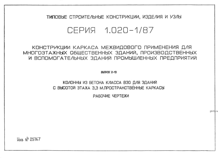 | Название стандарта | Конструкции каркаса межвидового применения для многоэтажных общественных зданий, производственных и вспомогательных зданий промышленных предприятий. |