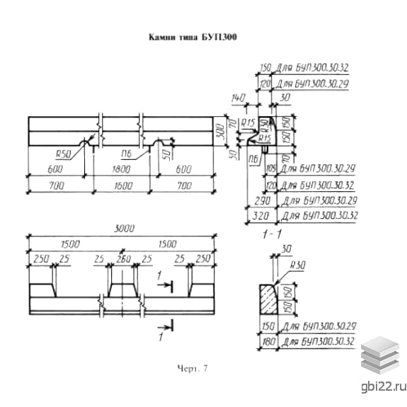 Маркировка камней прямых с прерывистым уширением состоит из буквенно-числовых групп, которые содержат информацию об изделиях. Маркировка БУП 300-30-29 (по ГОСТ 6665-82) расшифровывается следующим образом: