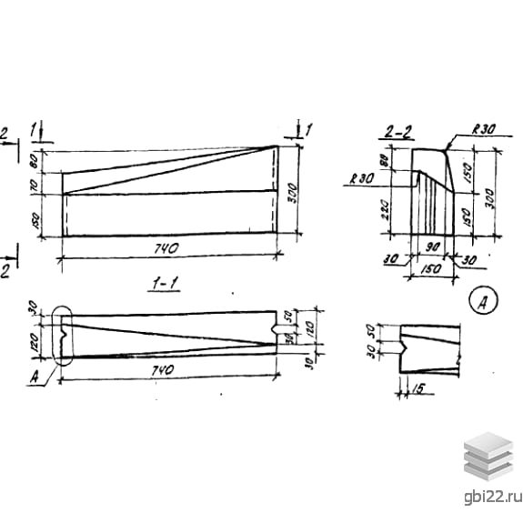 Бордюры въездные БВП 75-30-15 размеры: длина, мм.: 740, ширина, мм.: 150, высота, мм.: 300, вес, кг.: 60, марка бетона: М200. Изделия относятся к категории Элементы благоустройства-Бортовые камни и изготавливаются по технической документации согласно ТПР 320-069.86