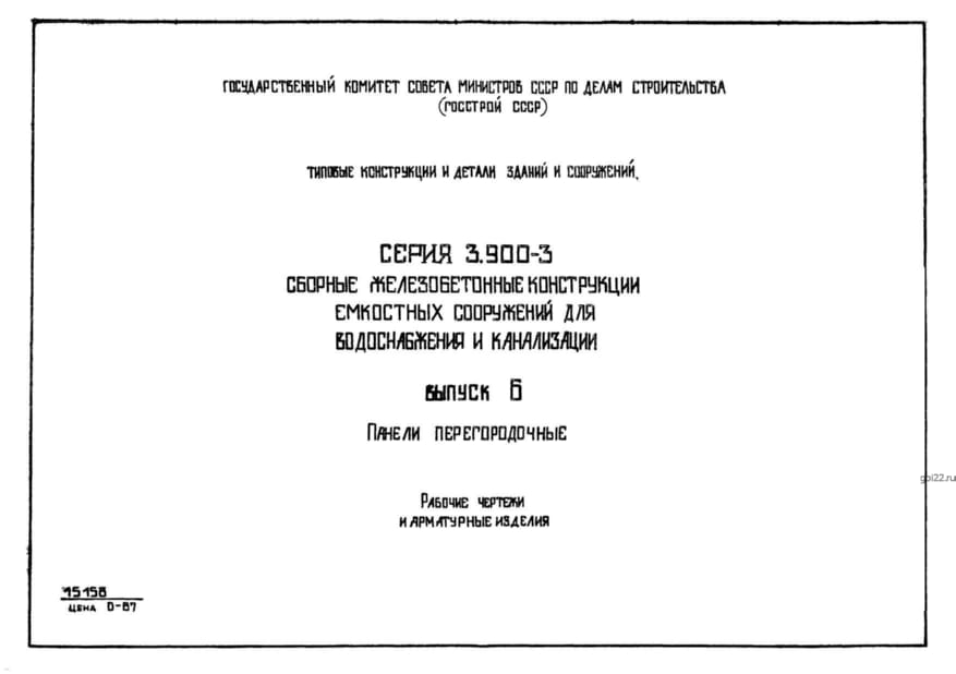 | Название стандарта | Сборные железобетонные конструкции емкостных сооружений для водоснабжения и канализации. |