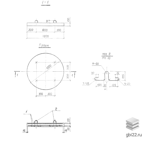 Плиты днища колодцев КЦД 10 а размеры: длина, мм.: 1200, ширина, мм.: 1200, высота, мм.: 100, вес, кг.: 275, марка бетона: М200. Изделия относятся к категории Элементы колодца-Плиты днища колодцев и изготавливаются по технической документации согласно ТП 902-09-46.88