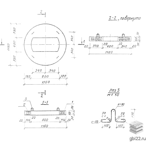 Плиты перекрытия колодцев КЦП 3-10 размеры: длина, мм.: 1160, ширина, мм.: 1160, высота, мм.: 120, вес, кг.: 225, марка бетона: М200. Изделия относятся к категории Элементы колодца-Плиты перекрытия колодцев и изготавливаются по технической документации согласно ТП 902-09-46.88
