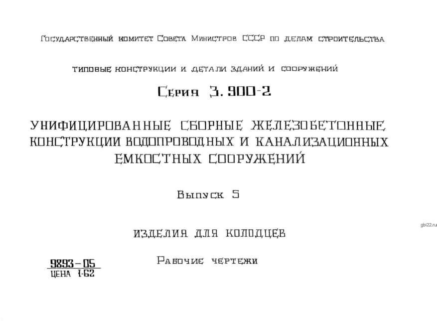 Унифицированные сборные железобетонные конструкции водопроводных и канализационных емкостных сооружений.