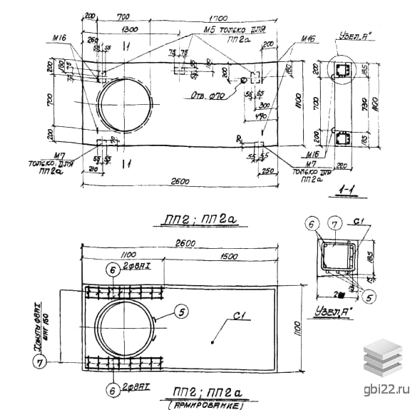 Плиты перекрытия колодцев ПП 2 а размеры: длина, мм.: 2600, ширина, мм.: 1100, высота, мм.: 220, вес, кг.: 1360, марка бетона: М300. Изделия относятся к категории Элементы колодца-Плиты перекрытия колодцев и изготавливаются по технической документации согласно ТП 905-7