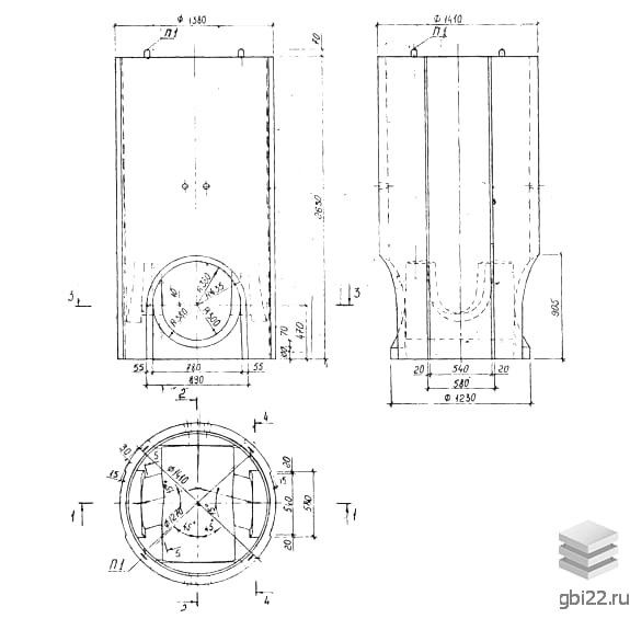 Сборные железобетонные колодцы на подземных трубопроводах. Рабочие чертежи.