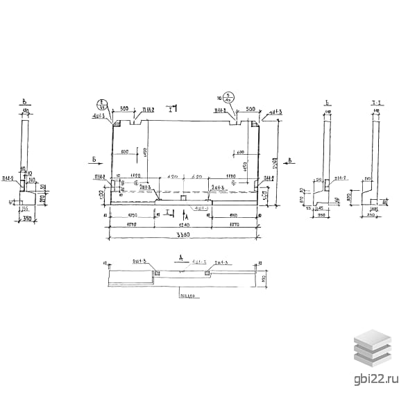 Лестничные площадки ЛП 2334-1 (по нормативу Альбом РМ 2283) – стандартизированные железобетонные изделия прямоугольной формы с технологическими пазами и выступами для соединения с лестничными маршами и стеновыми панелями. На боковых гранях предусмотрены трапециевидные выемки для строповочных петель, упрощающих монтаж и транспортировку. Нижний торец имеет Г-образный профиль для усиления конструкции.