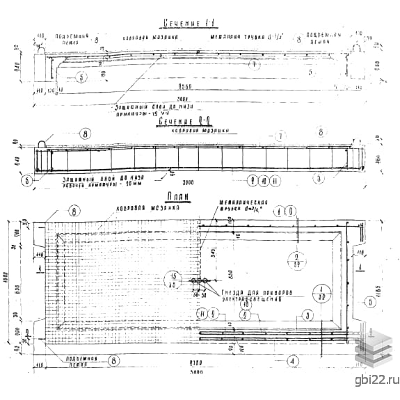 Изготавливаются из тяжелого бетона (прочность на сжатие – 140 кг/см?) с армированием: