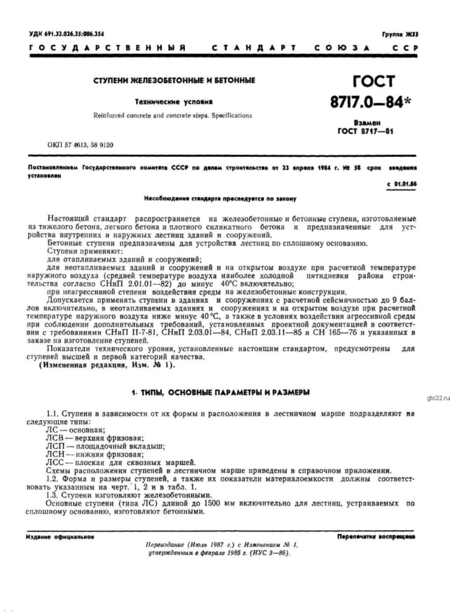 | Название стандарта | Ступени железобетонные и бетонные. Технические условия. |