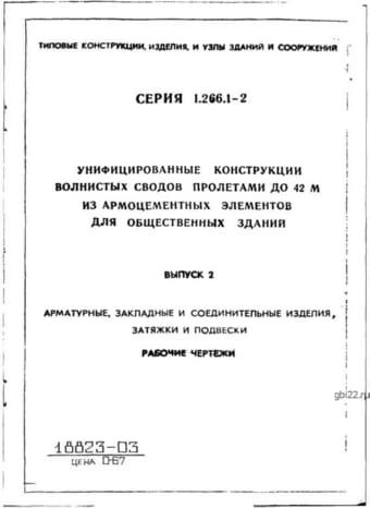 | Название стандарта | Унифицированные конструкции волнистых сводов пролетами до 42 м из армоцементных элементов для общественных зданий. |