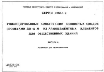 | Название стандарта | Унифицированные конструкции волнистых сводов пролетами до 42 м из армоцементных элементов для общественных зданий. |