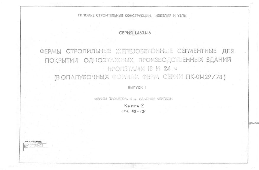 | Название стандарта | Фермы стропильные железобетонные сегментные для покрытий одноэтажных производственных зданий пролетами 18 и 24 м (в опалубочных формах ферм серии ПК-01-129/78). |