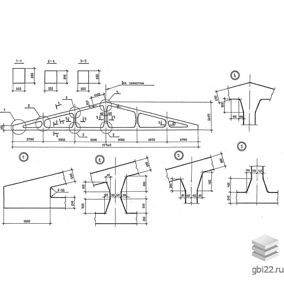 Фермы стропильные железобетонные пролетом 6; 9; 12; 15 и 18 м для покрытий зданий с уклоном асбестоцементной кровли 1:4.