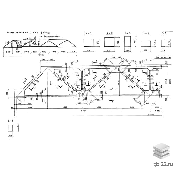 | Название стандарта | Фермы стропильные железобетонные полигональные пролетами 18 и 24 м для покрытий зданий с малоуклонной кровлей. |