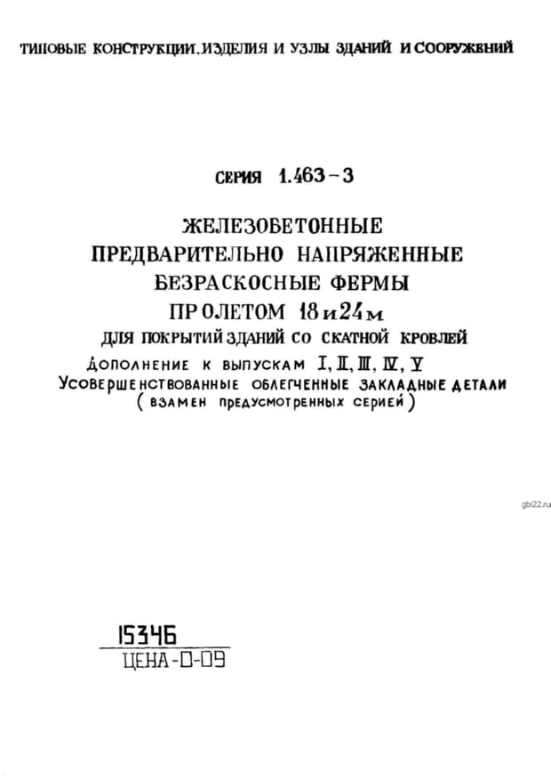 | Название стандарта | Железобетонные предварительно напряженные безраскосные фермы пролетом 18 и 24 м для покрытий зданий со скатной кровлей. |
