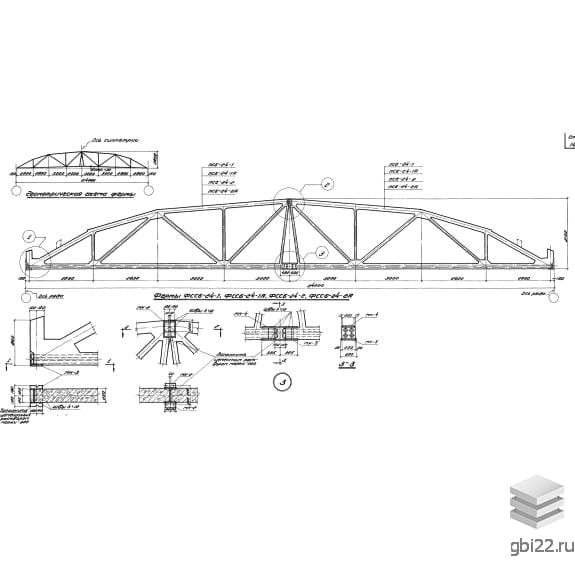 Сборные железобетонные предварительно напряженные сегментные фермы для покрытия зданий с пролетами 18, 24 и 30 м с шагом ферм 6,0 м.