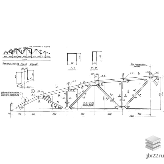 Сборные железобетонные предварительно напряженные сегментные фермы для покрытия зданий с пролетами 18, 24 и 30 м с шагом ферм 6,0 м.