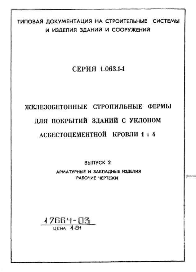| Название стандарта | Железобетонные стропильные фермы для покрытий зданий с уклоном асбестоцементной кровли 1:4. |
