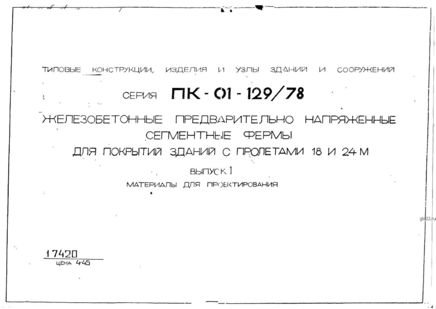 | Название стандарта | Железобетонные предварительно напряженные сегментные фермы для покрытий зданий с пролетами 18 и 24 м. |