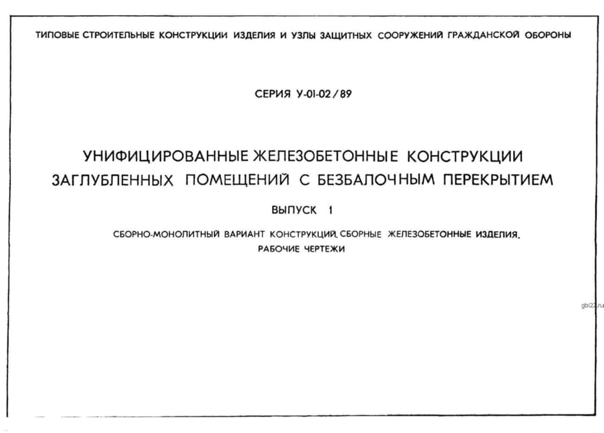 | Название стандарта | Унифицированные железобетонные конструкции заглубленных помещений с безбалочным перекрытием. |