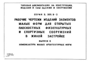 | Название стандарта | Рабочие чертежи изделий элементов малых форм для открытых плоскостных физкультурных и спортивных сооружений в жилой застройке. |